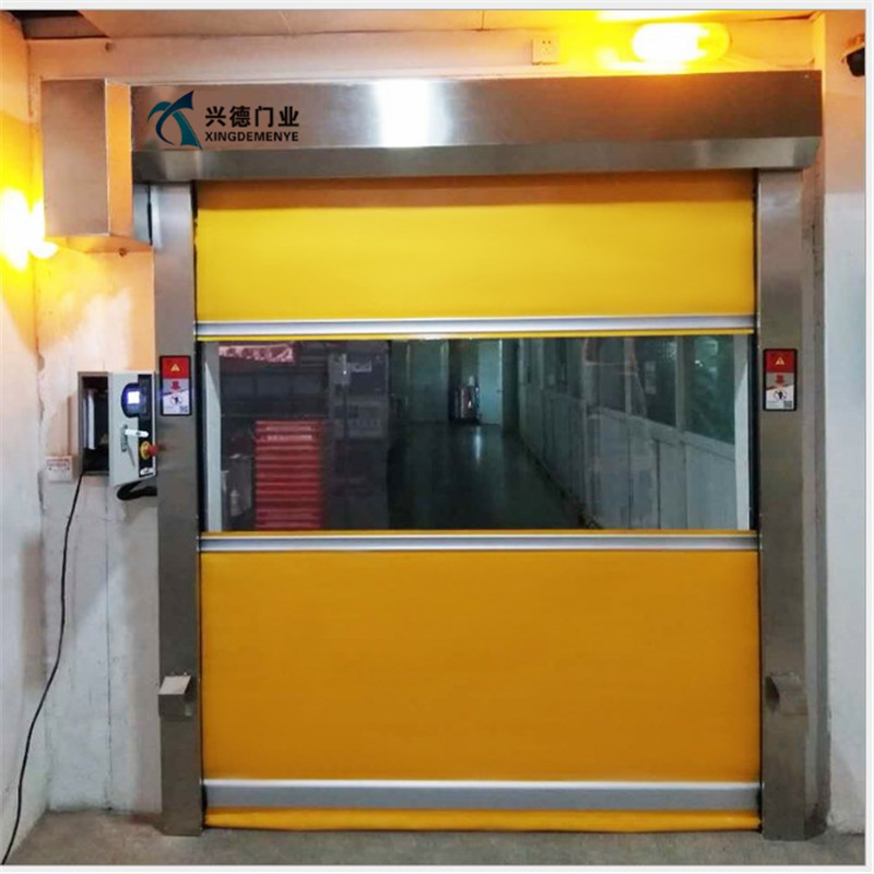 門布材質:一般以PVC或PVDF膜材作為簾布,特別是PVDF膜材抗老化性能更好,不易退色而且有自潔功能,做快速卷門非常適合。產地以德國產或法國產的為首選。厚度0.8mm-2.0mm。顏色有橙色、黃色、藍色、銀色、透明網格,黑色等,以橙色為首選,原因是橙色非常醒目,有警告作用,還有一定的防蟲功能。